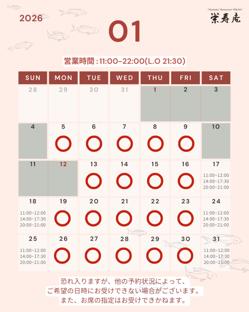 1月の予約カレンダーでございます。