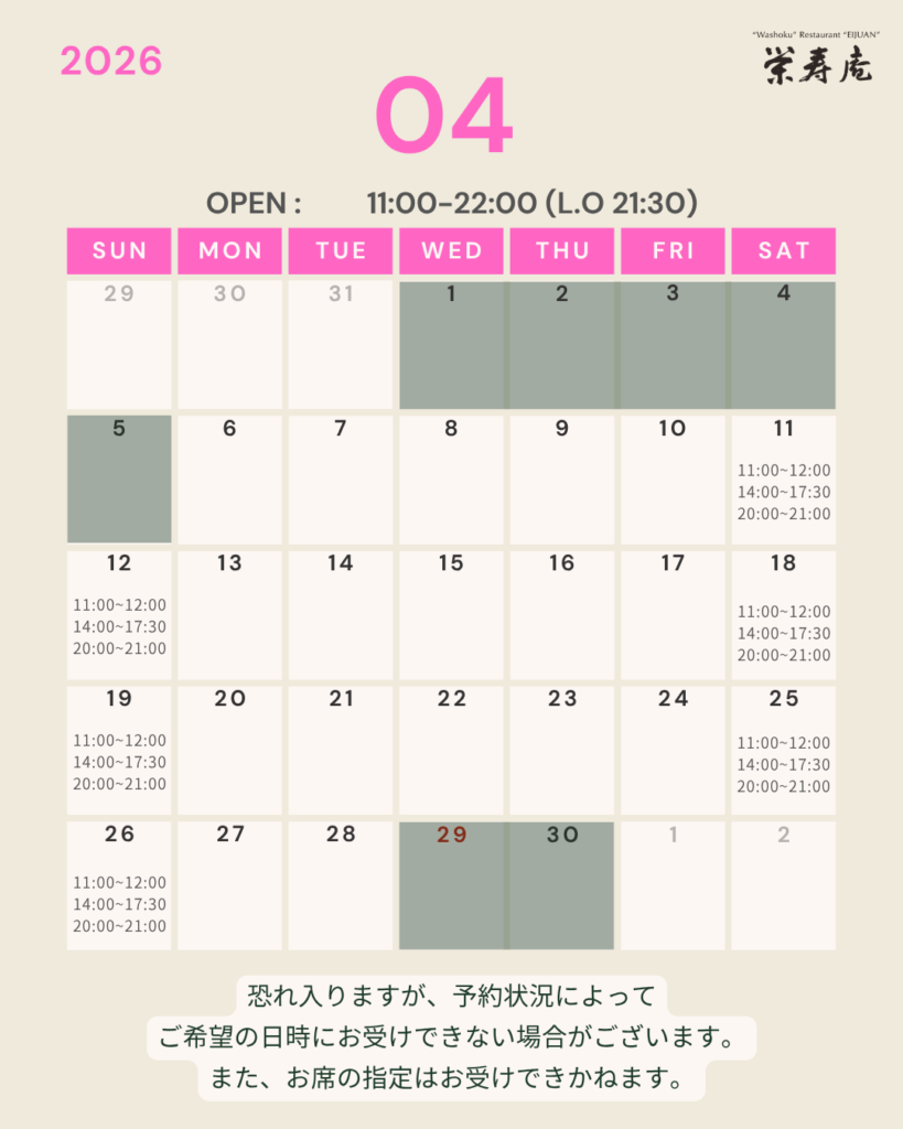 4月のご予約についてのご案内でございます。